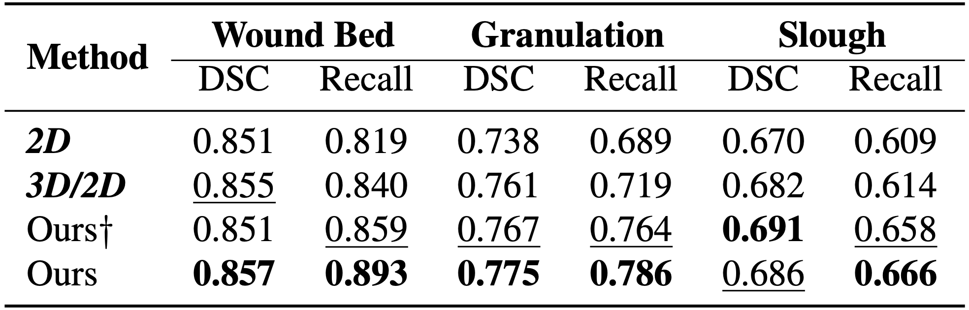 - 3D/2D: Multi‑view aggregation following Wound3DAssist